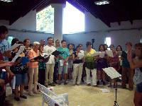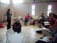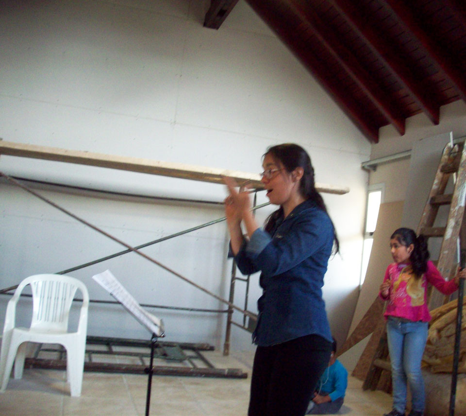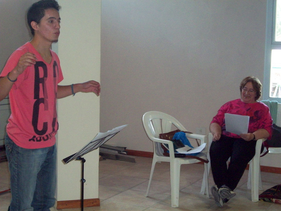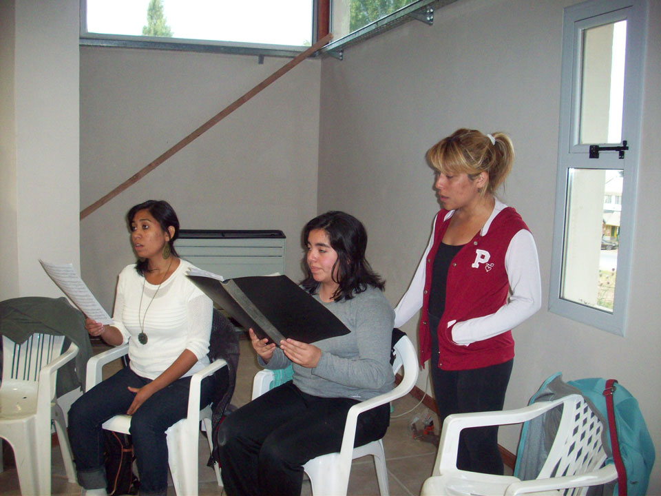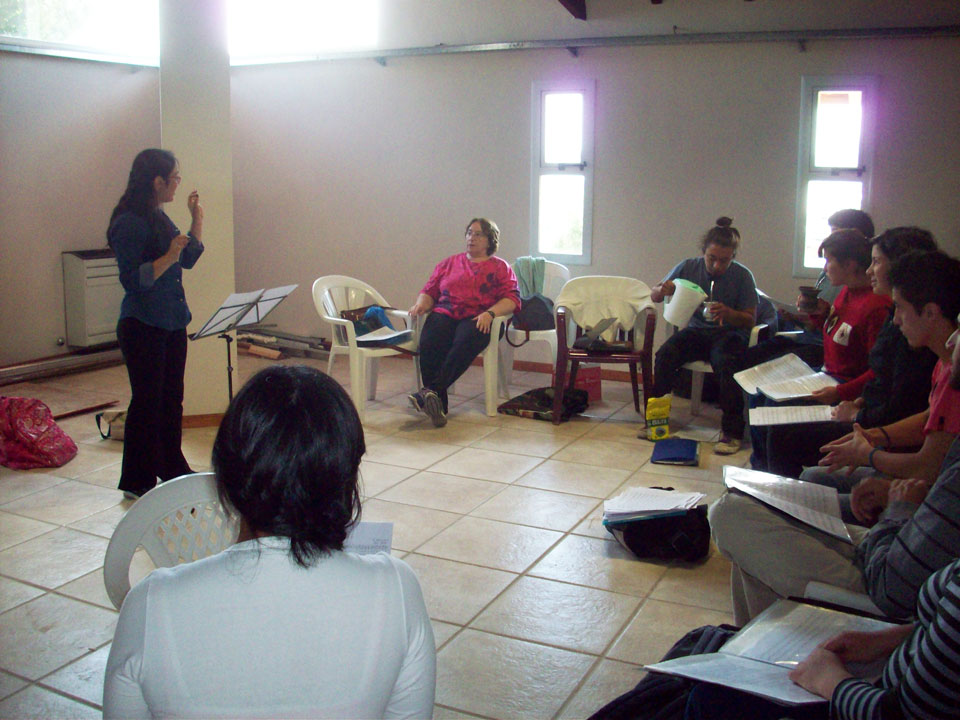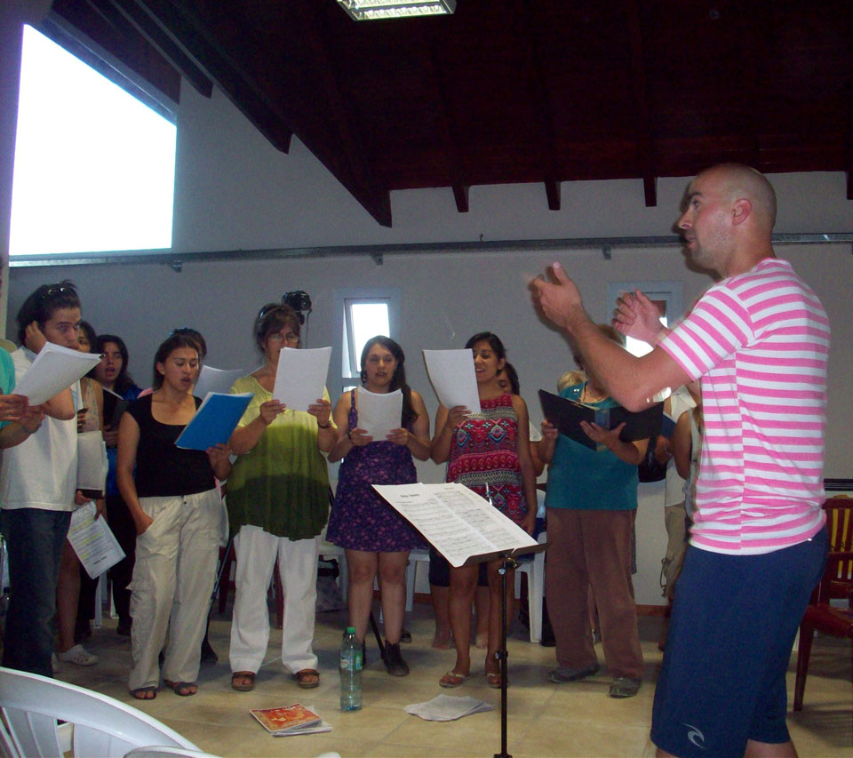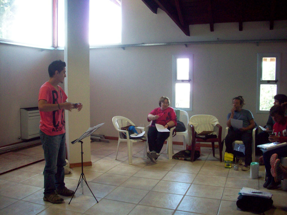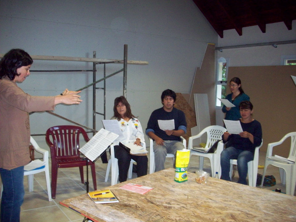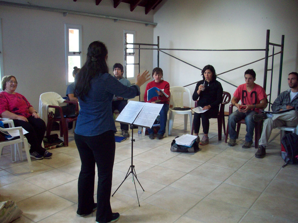 Taller de dirección coral para talleristas de la Fundación, en el marco del Taller de Verano del Coro Juvenil Municipal de Bariloche, dirigido por Laura Esteves.