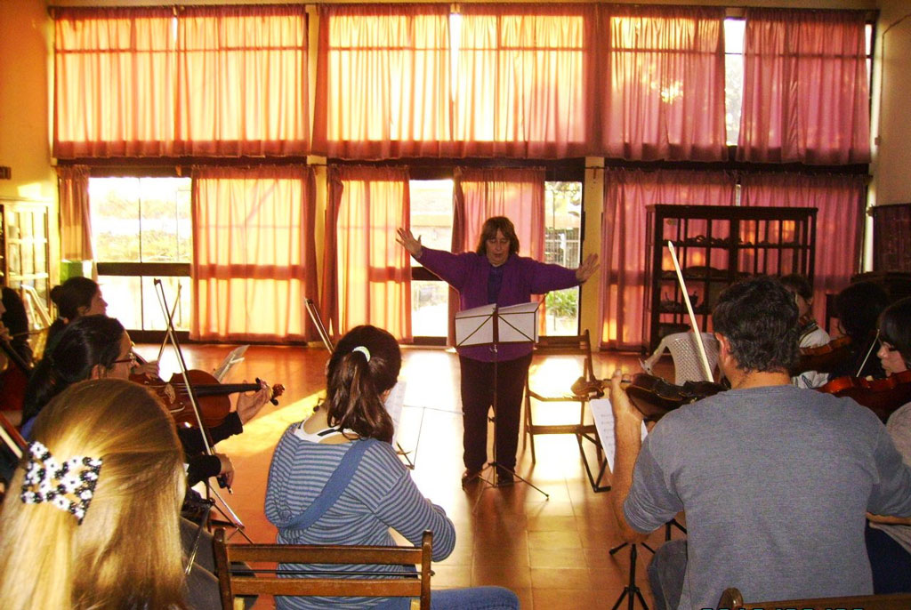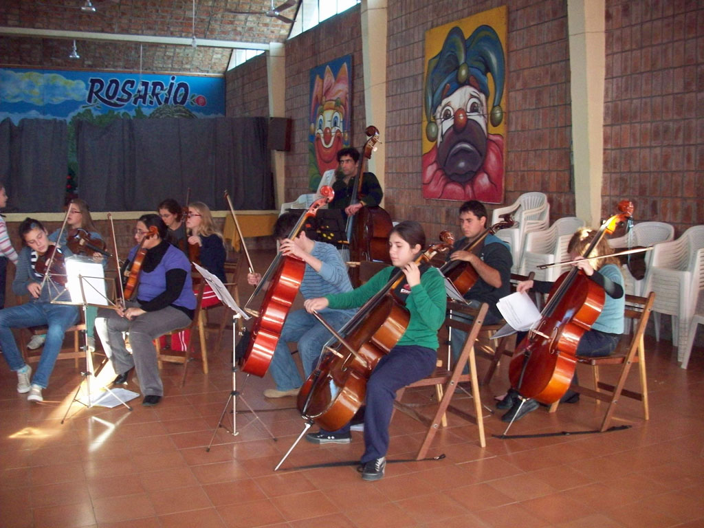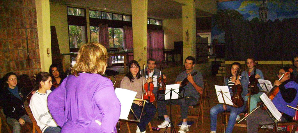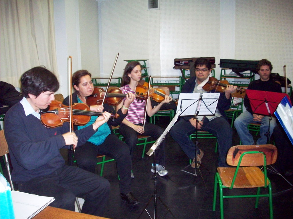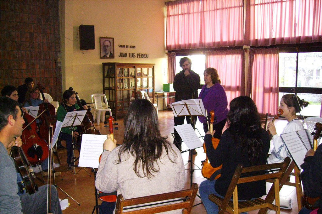 Taller de armonía y análisis para docentes del proyecto Grupos Sonantes en Montevideo (Escuela Universitaria de Música), ensayo con la orquesta de docentes, y ensayo con la orquesta infantil y juvenil de Rosario (Colonia).