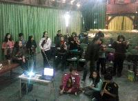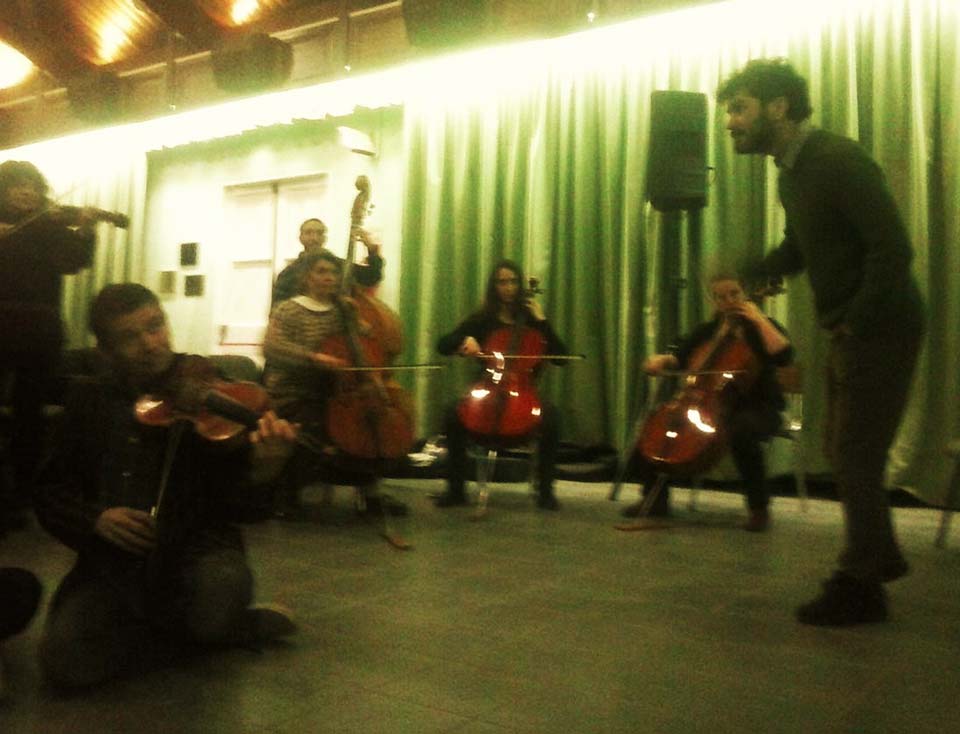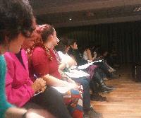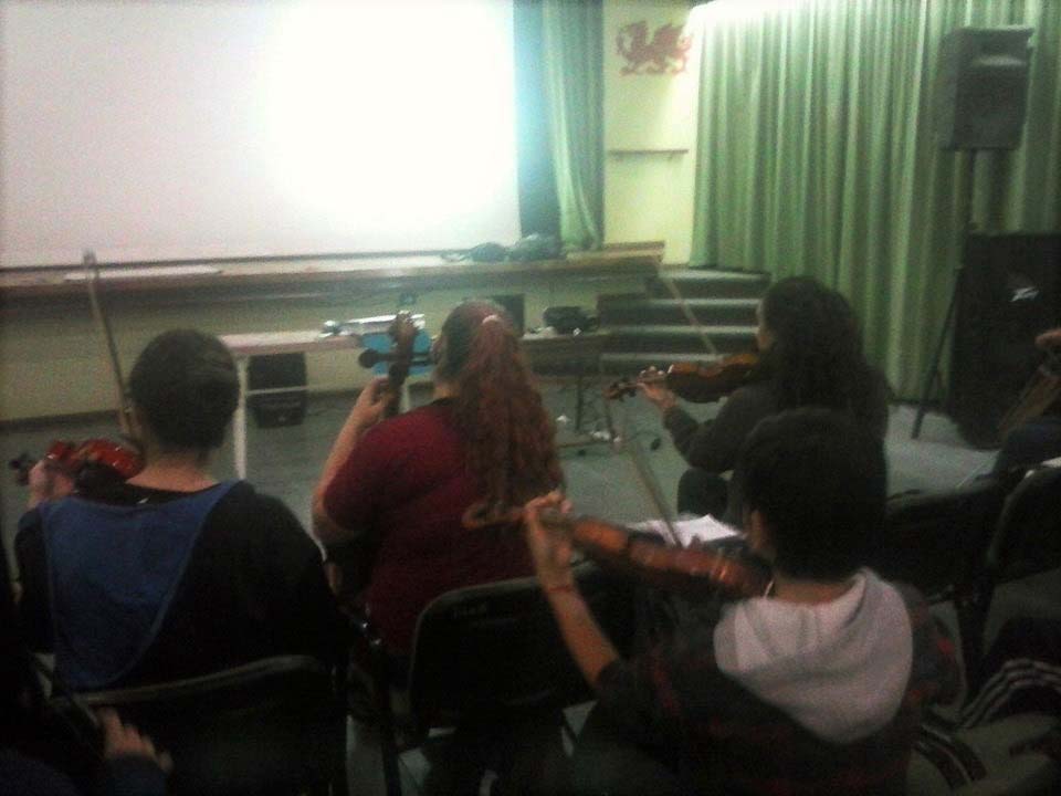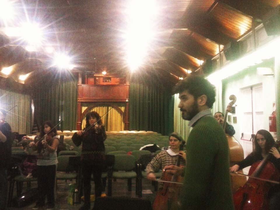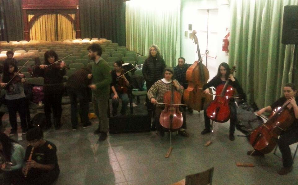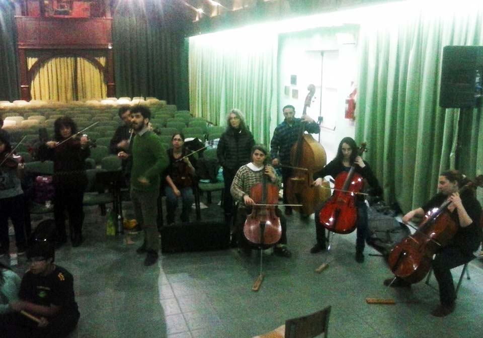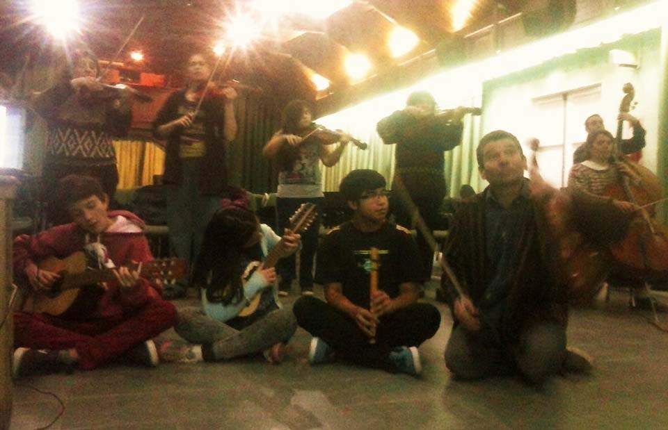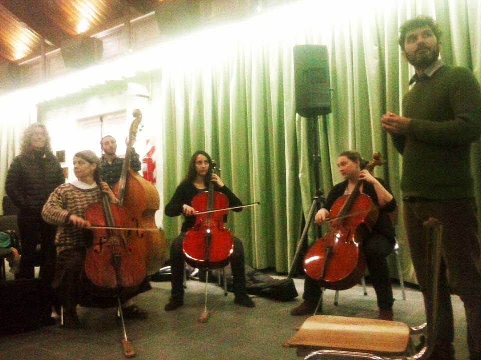 A) Segundo módulo del taller de Audioperceptiva y Armonía para integrantes de la orquesta Arcos de Trevelin, dirigida por Paz Misurelli, y la orquesta Pú Pichikeché de Esquel, del Programa Andrés Chazarreta, dirigida por Victor Nereo.