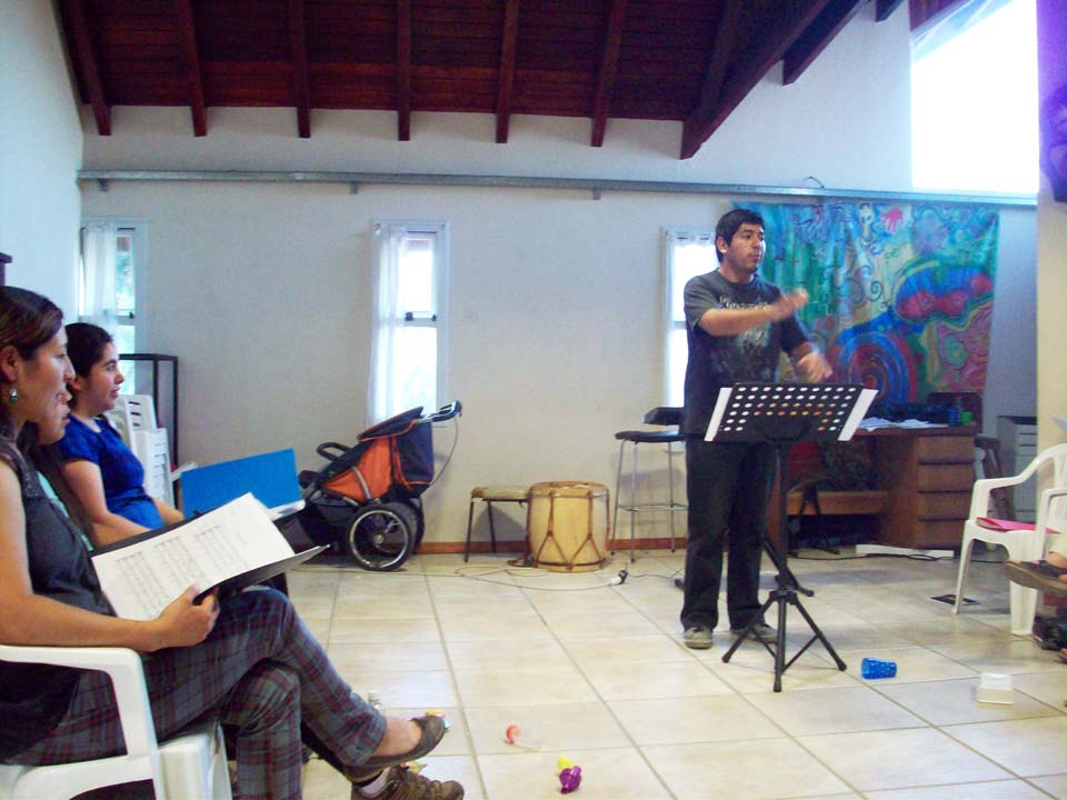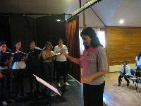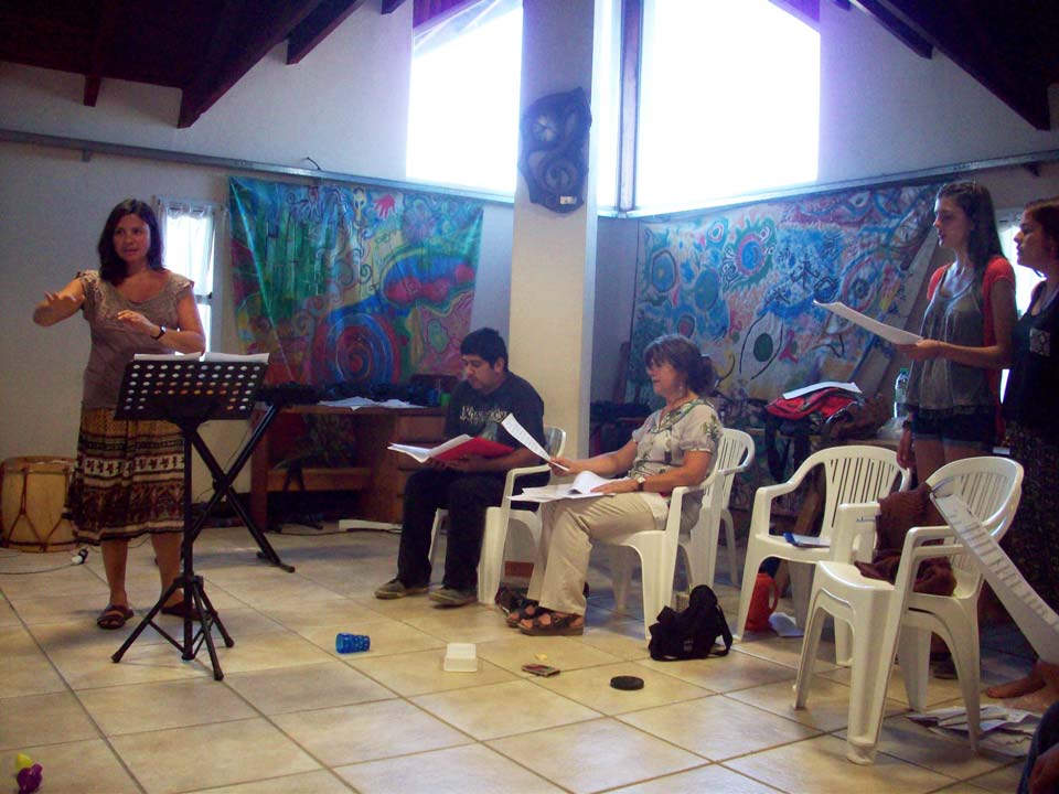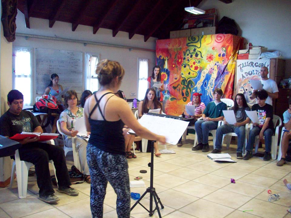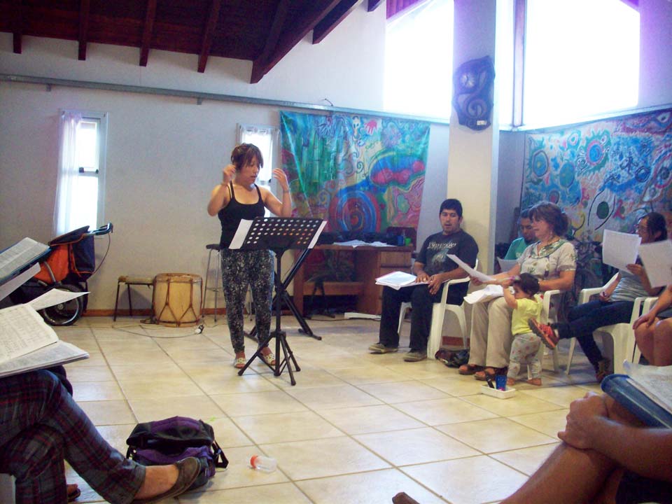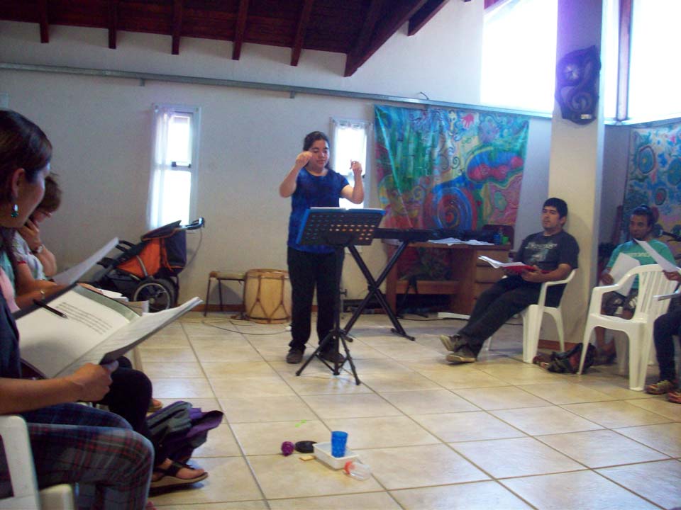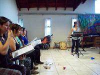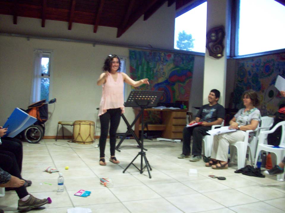 Taller de dirección coral para talleristas de la Fundación, en el marco del Taller de Verano del Coro Juvenil Municipal de Bariloche, dirigido por Laura Esteves.