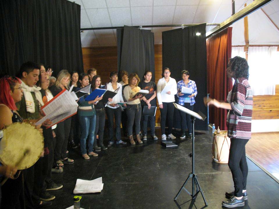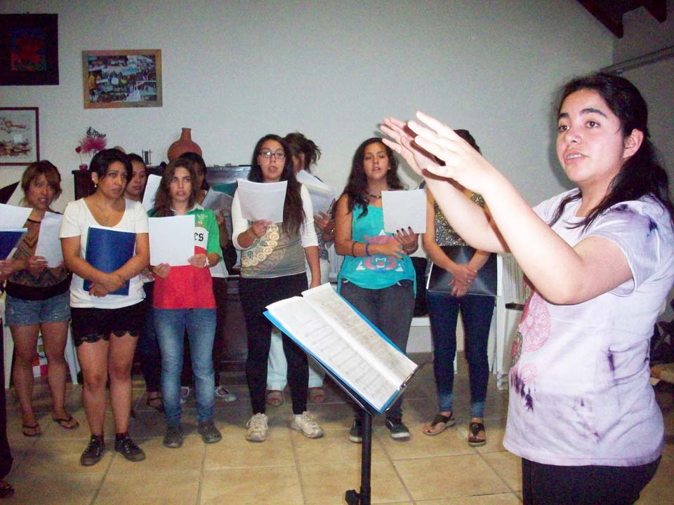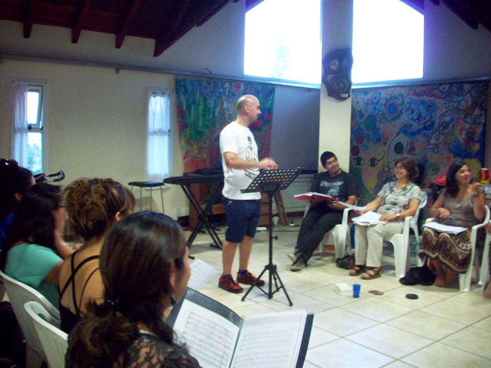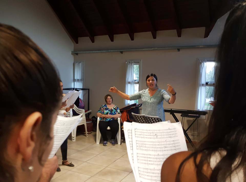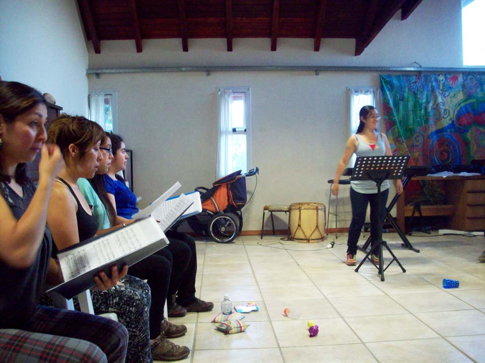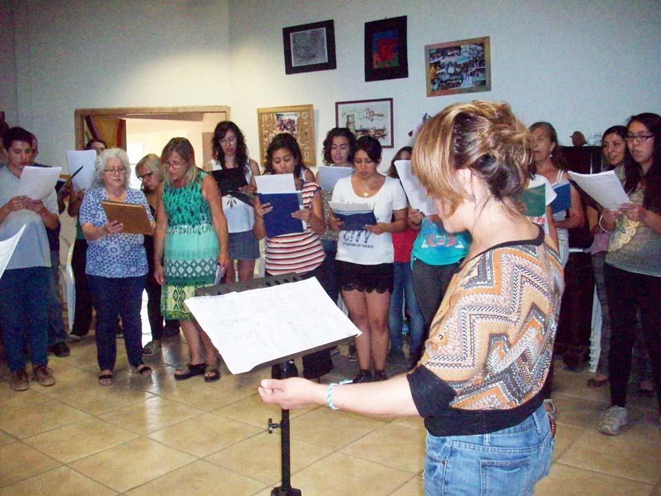 Taller de dirección coral para talleristas de la Fundación, en el marco del Taller de Verano del Coro Juvenil Municipal de Bariloche, dirigido por Laura Esteves.