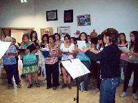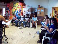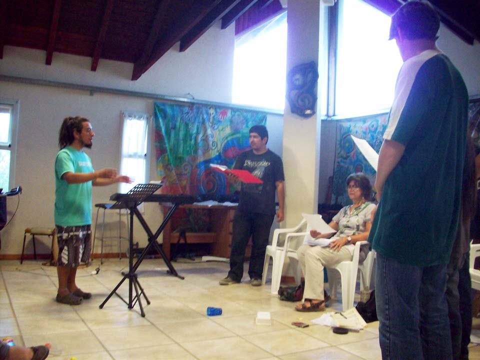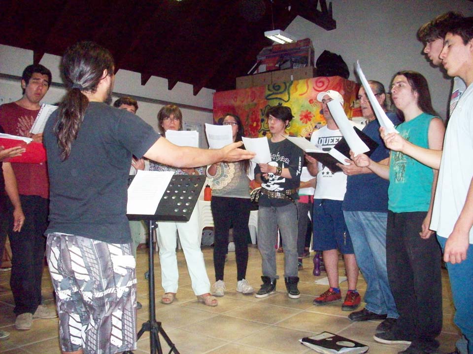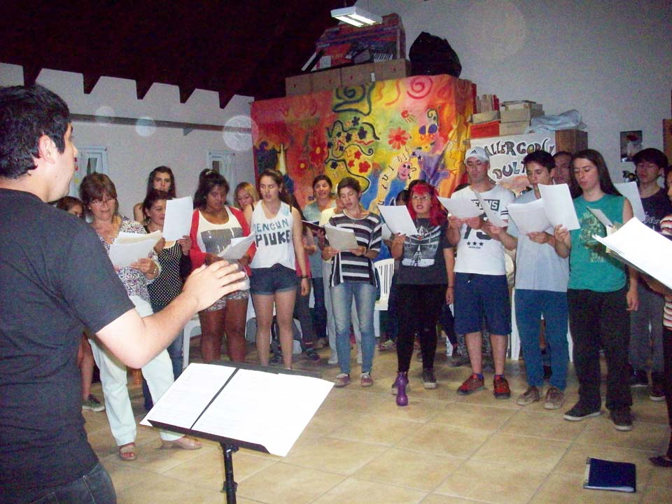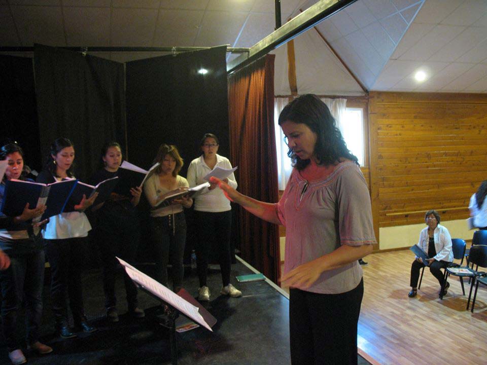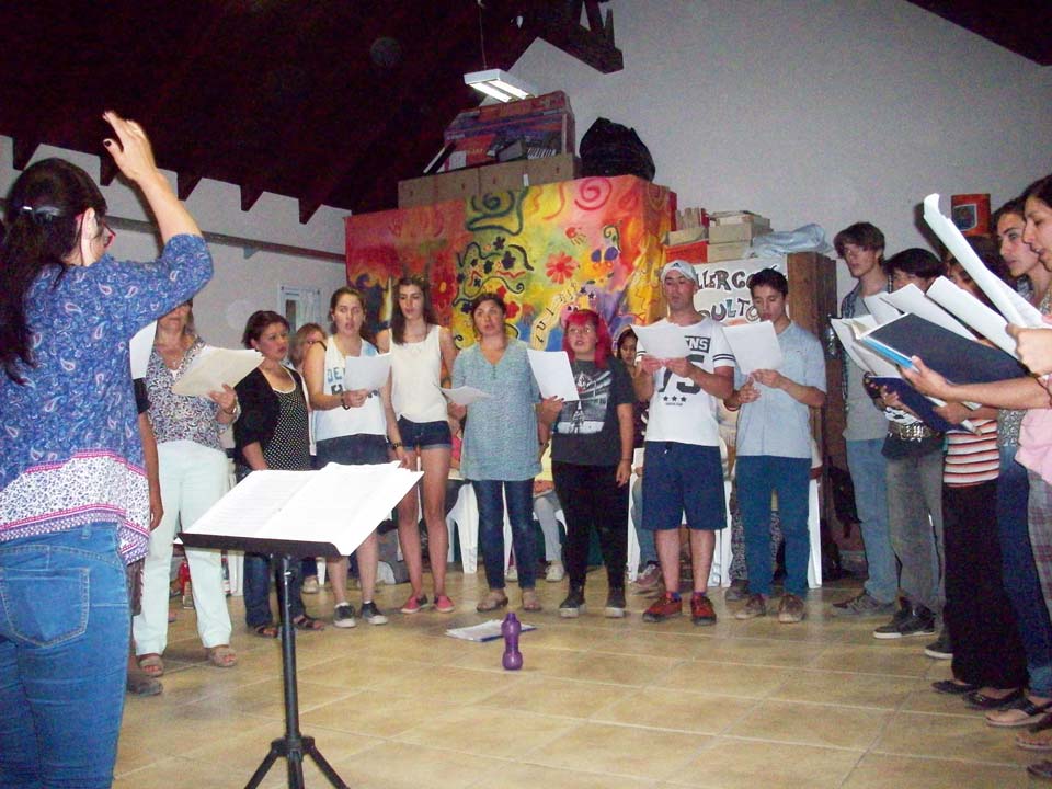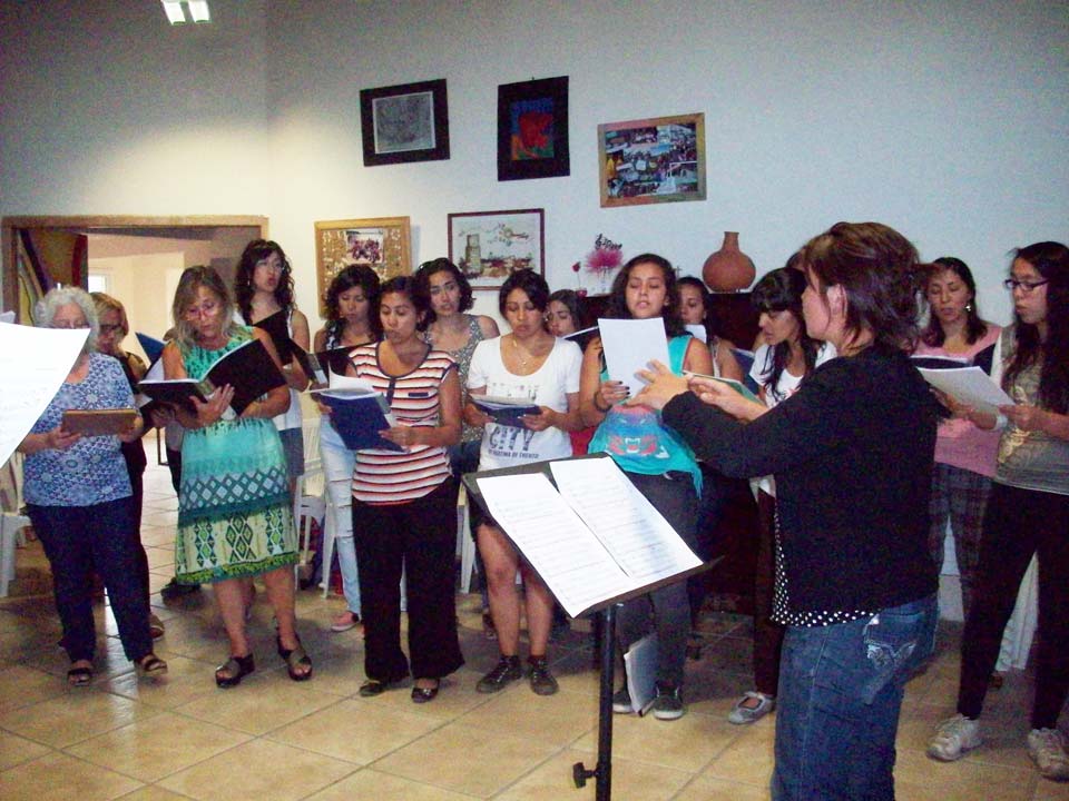 Taller de dirección coral para talleristas de la Fundación, en el marco del Taller de Verano del Coro Juvenil Municipal de Bariloche, dirigido por Laura Esteves.