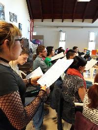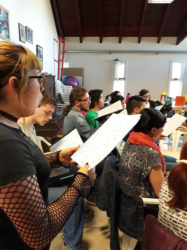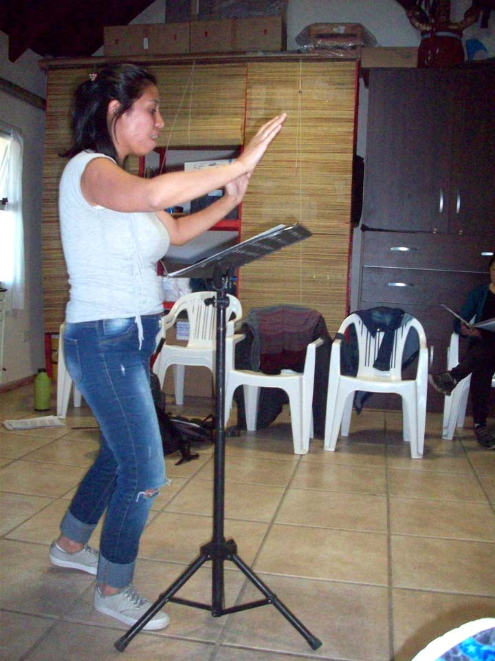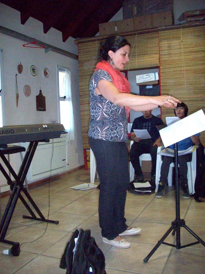 Dirección coral para talleristas de la Fundación, en el marco del Taller de Verano del Coro Juvenil Municipal de Bariloche, dirigido por Laura Esteves.