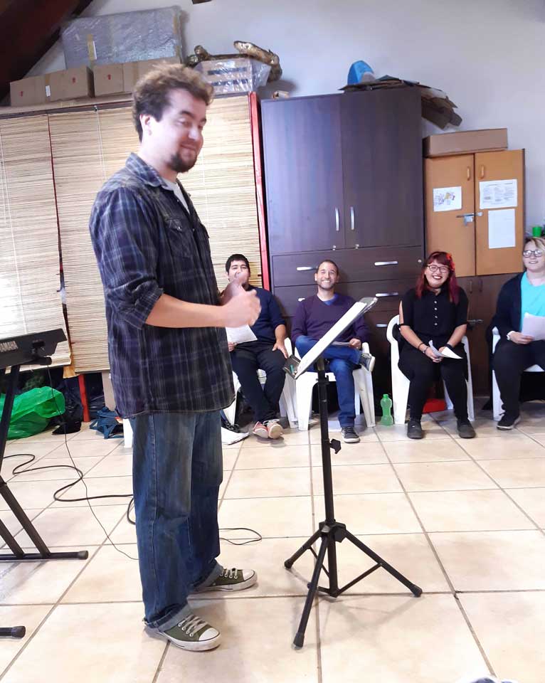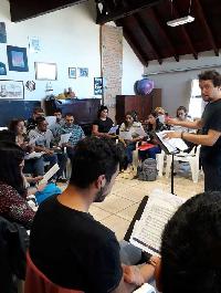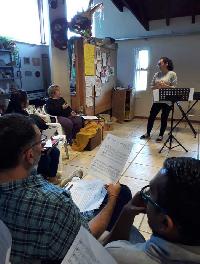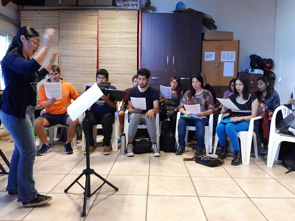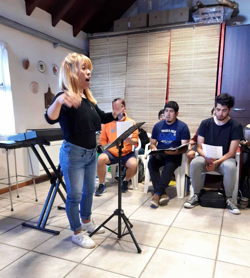 Dirección coral para talleristas de la Fundación, en el marco del Taller de Verano del Coro Juvenil Municipal de Bariloche, dirigido por Laura Esteves.